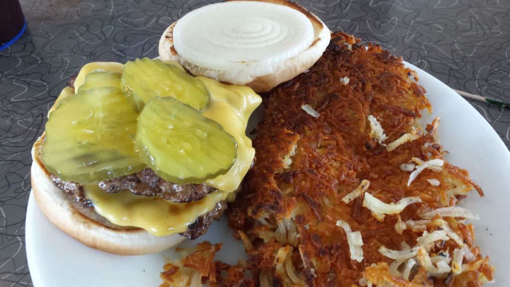 I have favorite menu items that I’ve been ordering for years at this place. They make their own sausage patties and great hash browns, so a basic breakfast plate with eggs and toast is one of them, as is a breakfast sandwich on an English muffin with one of those sausage patties.. A double cheeseburger is another.
