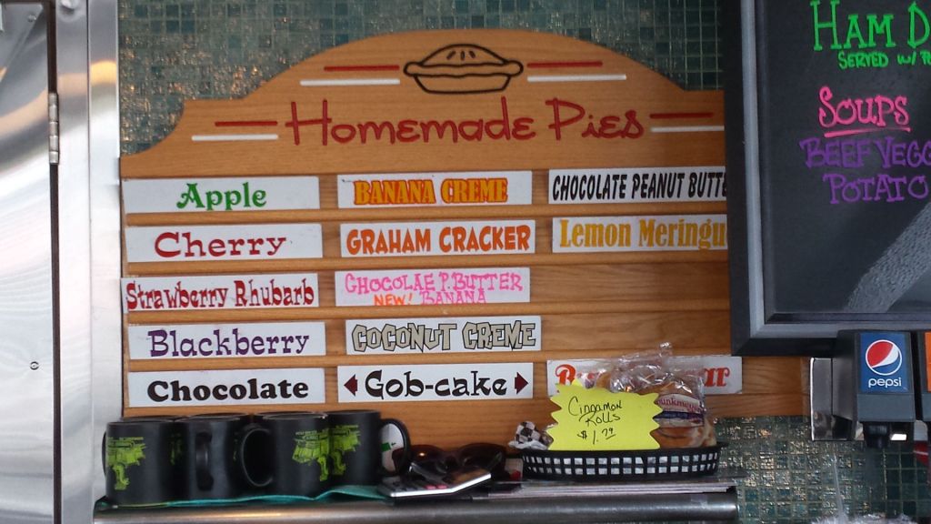 Regardless of what I have for a meal at the Summit, I always finish with a slice of pie. You can see the pie case in one of the above photos. There is also a board on the wall that lets customers know what flavors are available.