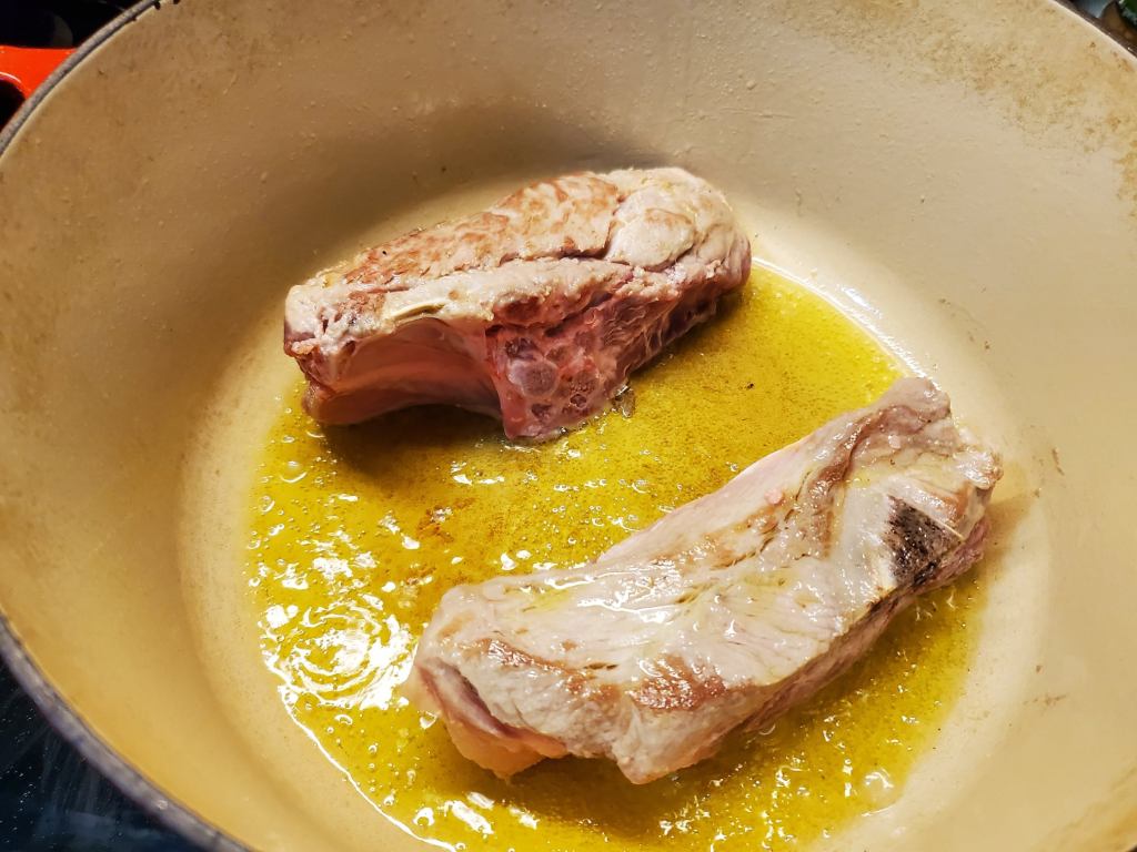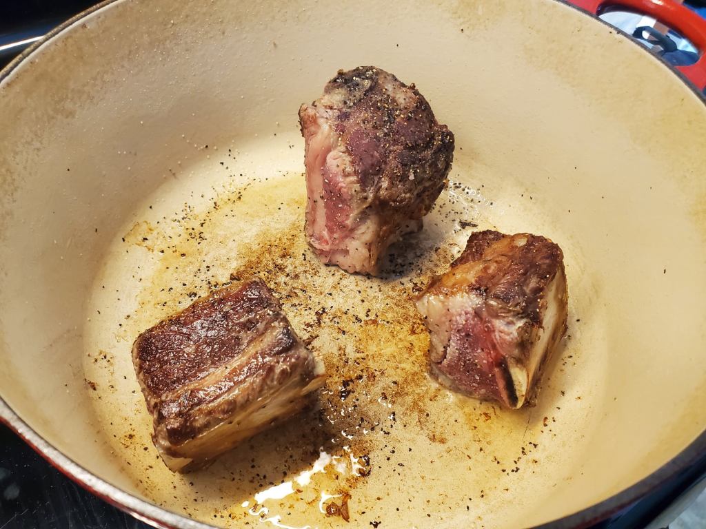 Once your meat is sufficiently browned, add it to the gravy and give it a good stir. You’re now finished with the hard part. The rest is just waiting. I stir the gravy about every 20-30 minutes and let it simmer for four to six hours. When it’s finished, make sure to remove and discard the herb pouch. If you used pork neck or beef marrow bones, do the same with those. You may also want to take the meat off the bone for short ribs and country-style pork ribs, if using those, just to make the eating experience simpler.