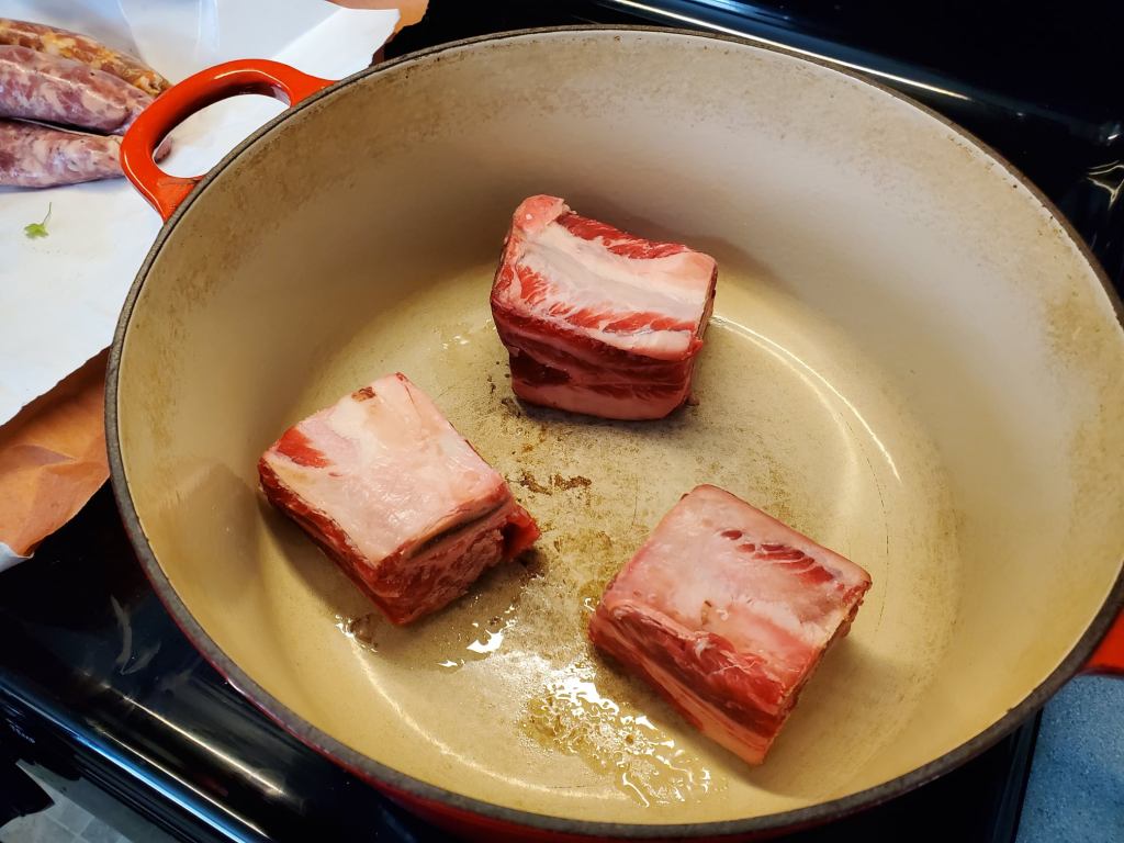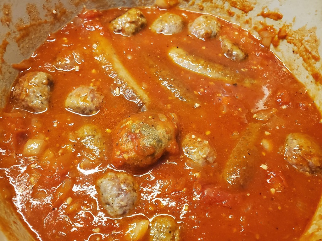 Once your gravy is simmering. It’s time to start preparing the meat. Whether you use meatballs, sausage or something a little more adventurous, including flavoring bones, you’ll need to brown the meat before adding it to the gravy. For meatballs, I’ll sometimes bake them for 20-25 minutes in a 350-375 degree oven rather than pan-browning them. Either way is fine. Do whatever you’re most comfortable with.