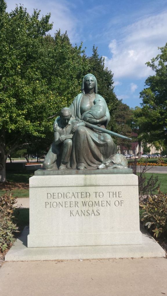 Our first stop in the Sunflower State was Topeka, to see another state house. We’ve probably visited at least a dozen state Capitol buildings over the years, and I would have to say none had a more spectacular exterior or nicer grounds than the one in Kansas. As is often the case with state houses, there was a Lincoln statue on the grounds, as well as one honoring the 19th century pioneer women who helped settle the state.