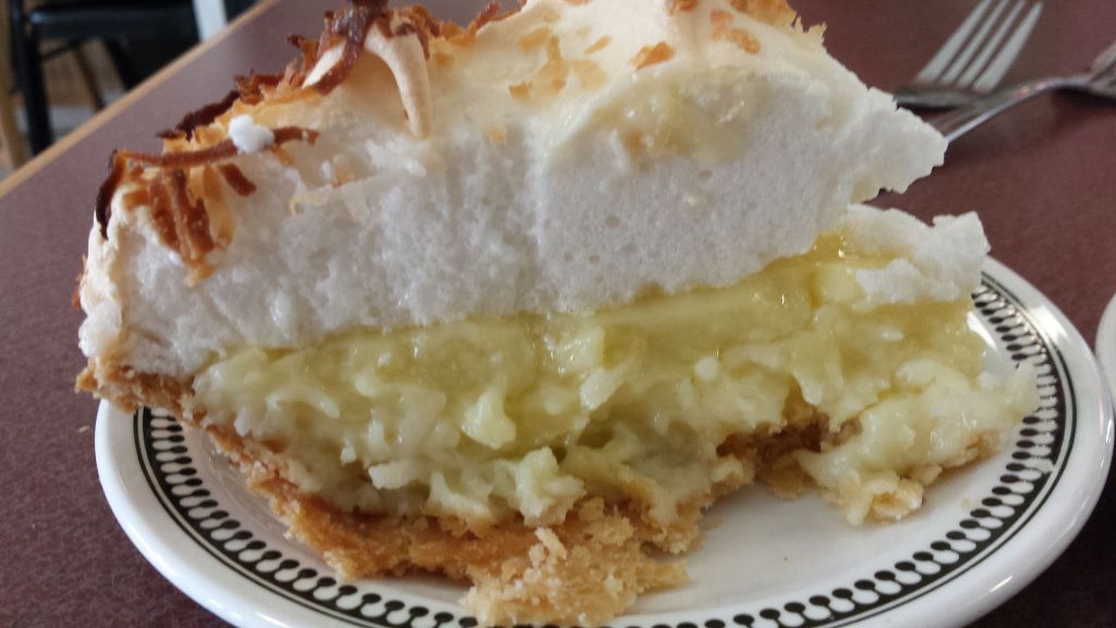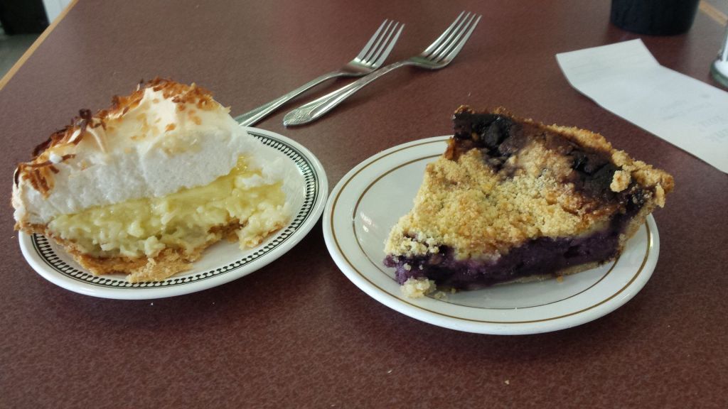 But my reason for stopping at the Sommerset Hall Cafe was their coconut cream pie. It was the winner of Good Morning America’s best pie contest in 2008. We also ordered a slice of blueberry-custard pie.