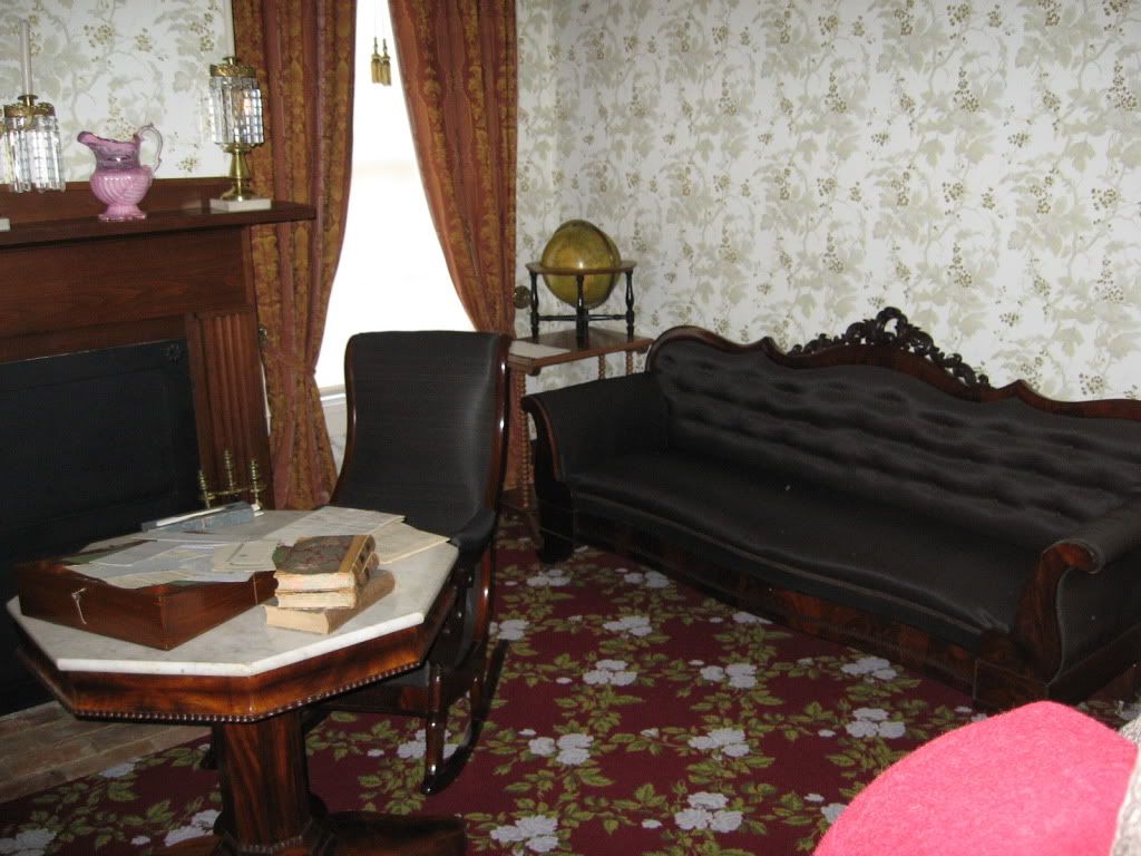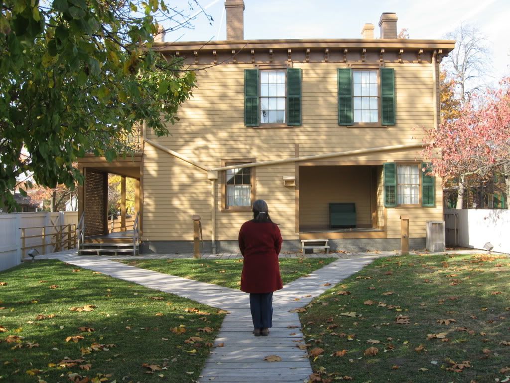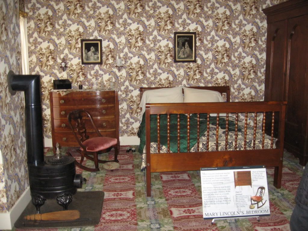 The highlight of the morning was a visit to and tour of the Lincolns’ home. The tours are led by Rangers from the National Park Service. It was a one story home when the Lincolns moved in, but they expanded it as their family grew along with Abe’s law practice. The home was very tastefully decorated. Abe and Mary slept in separate rooms, as was common then. There were chamber pots inside and an outhouse in the back.