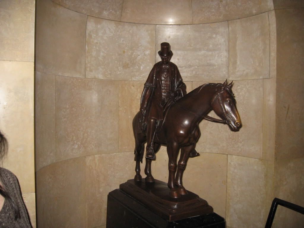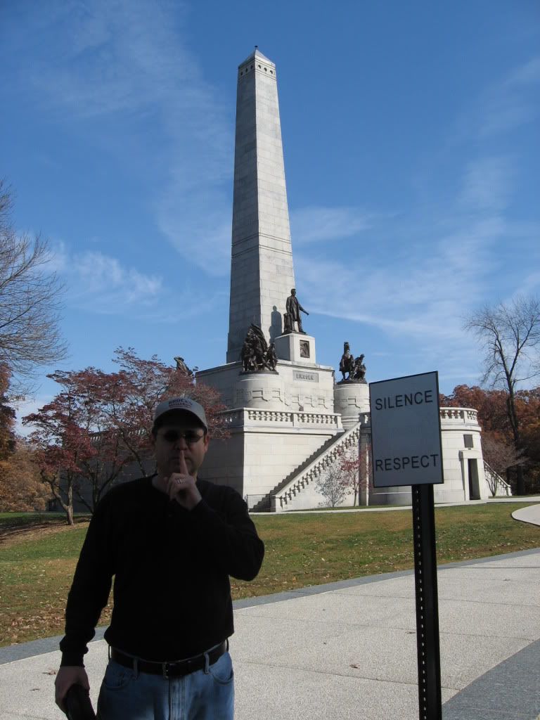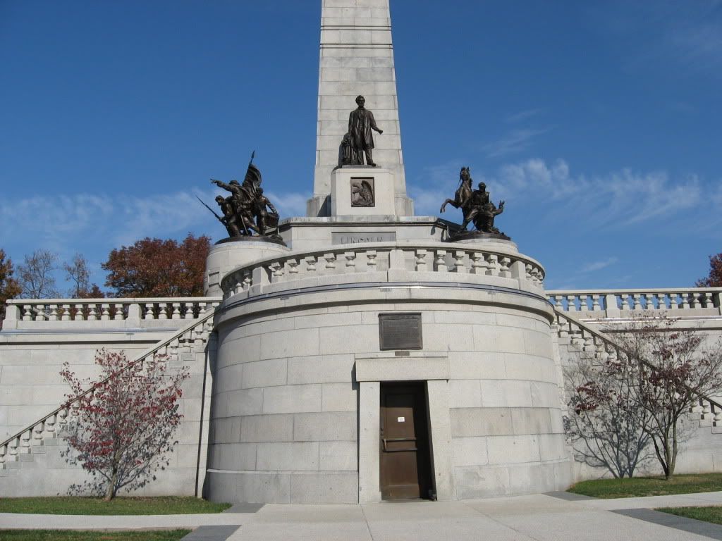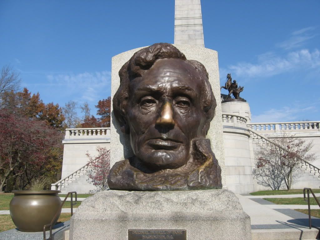 We had one more major Lincoln attraction to get to that day, and it turned out to be the most spectacular of all and one of the more memorable sight-seeing experiences I’ve had. The memorial in which Lincoln’s tomb sits is fairly spectacular-appearing at first site. It looks like a smaller version of the Washington Monument with several striking statues around the base, beautiful grounds and a famous Lincoln bust created by Gutzon Borglum nearby.