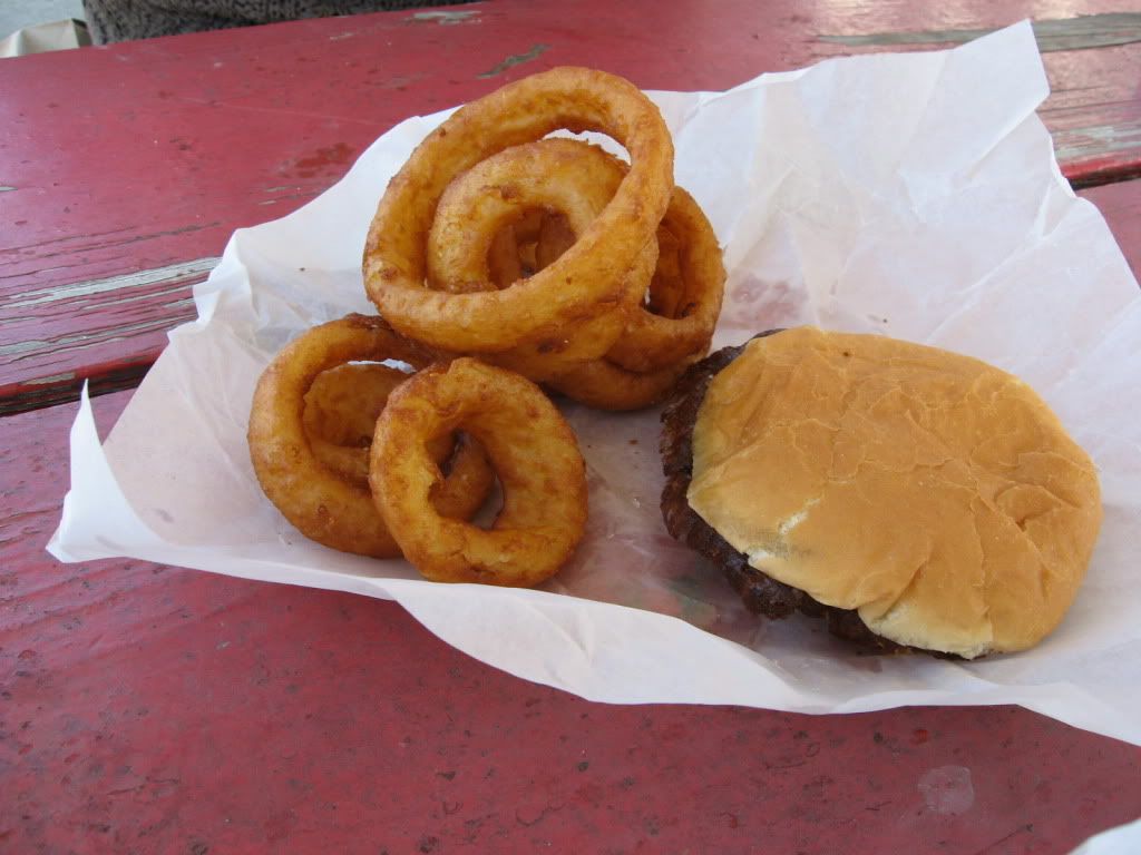 The burger, which I had with onion rings on the side, was slightly disappointing if memory serves me. It was still nice to be eating a burger outside on a beautiful day in Lincoln’s home town.