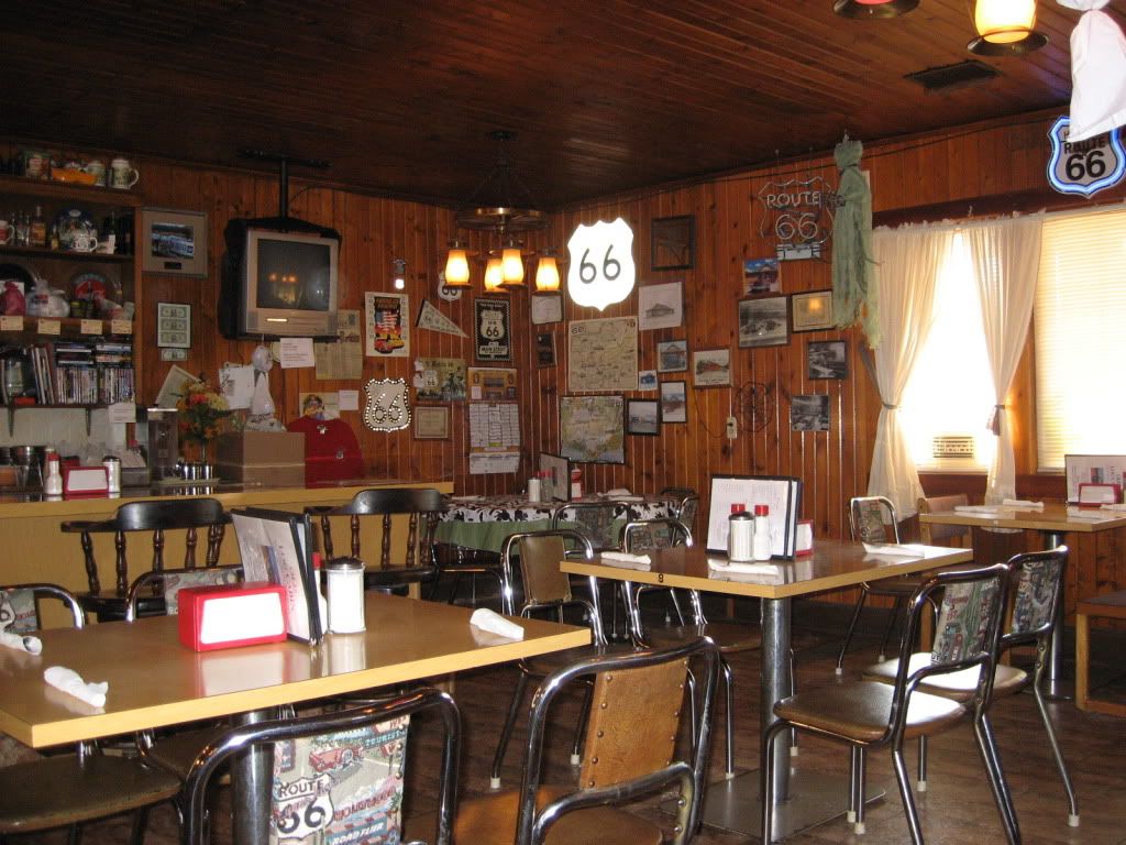 With the first bit of Rt. 66 kitsch under my belt, I was ready to eat. We chose the Old Log Cabin in Pontiac, IL, which first opened as a lunchroom and gas station in 1926 and doesn’t appear to have gone through a lot of radical changes over the years.