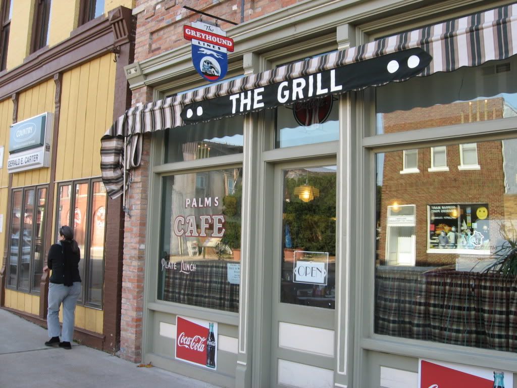 We had to hurry back to Chicago to catch our flight home during the morning and early afternoon of the trip’s final day, so we took the interstate. But we did veer back onto Route 66 one final time for a last meal. Our choice was the Palms Grill Cafe in Atlanta, Illinois. We started our Route 66 journey with a roadside giant and we would finish it with another one. This time, it was a huge muffler man holding a hot dog right across the street from the restaurant.