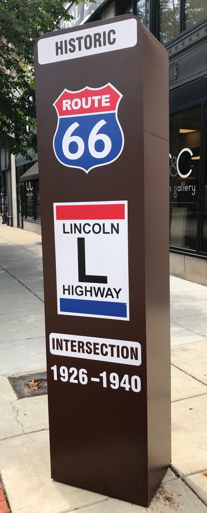 As we drove gradually further from Chicago, we passed through a series of towns, including Joliet, where we stopped to pick up a mug for my brother-in-law’s collection at the University of St. Francis. Joliet also has the distinction of being the city where Route 66 and the Lincoln Highway, another road with plenty of historical significance, intersected for a period. Both still pass through the town.