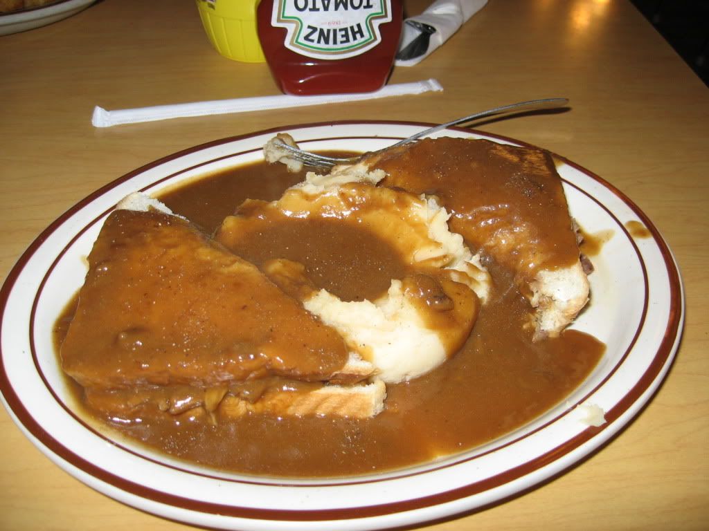 My wife tried a breaded pork tenderloin with green beans and tots, while I went with a hot roast beef sandwich and mashed potatoes smothered in brown gravy. I hadn’t quite gained a significant interest in pie at this point, so I by-passed the opportunity to order some for dessert, something I have rarely done during later food trips.