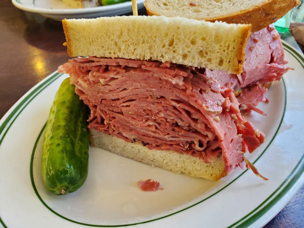 While Famous Fourth Street can be compared to the now-closed Carnegie Deli of New York in terms of the style of their deli meats, Hershel’s is more like Katz’s in that they hand-carve the corned beef, which results in thicker slices and a different texture. I have developed a definite preference for hand-carved corned beef since first trying it at Katz’s and had it regularly from Hershel’s until COVID got in the way. It helped that my office was around the corner from the Reading Terminal.