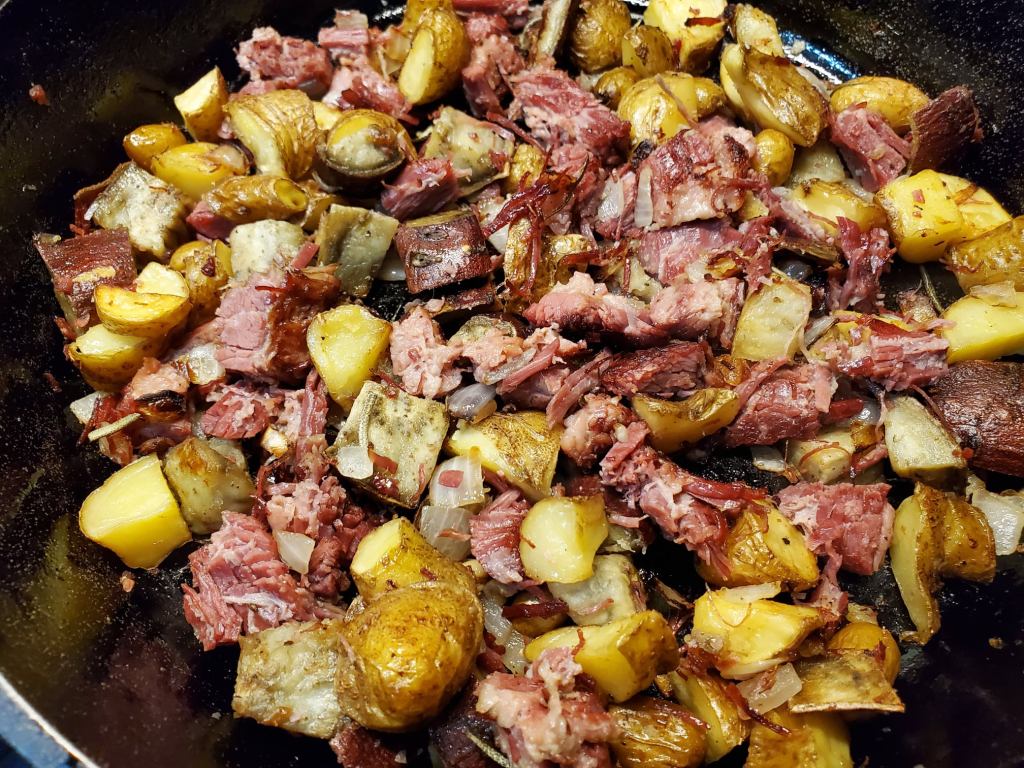 The only problem was that my wife is not a corned beef eater, so I had a lot of meat to get through. I found that the best way to reheat it was to carve cold slices and heat them in a steamer. I also used some of the corned beef to make hash, a favorite breakfast dish of mine when it is homemade rather than from a can.