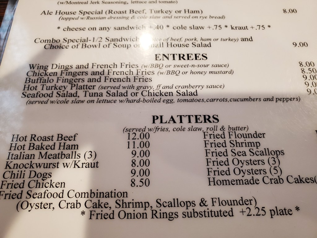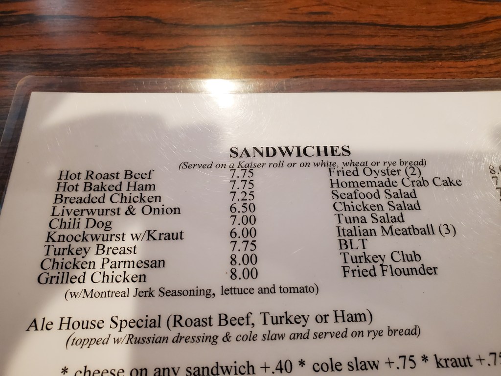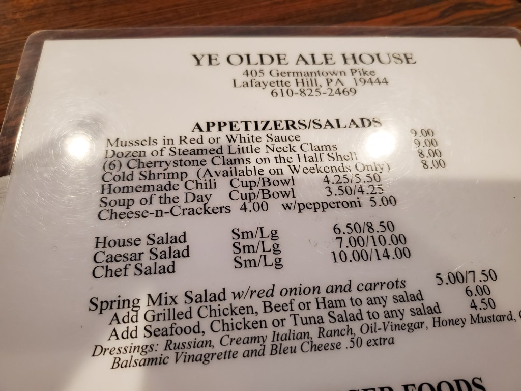 We needed to make a quick decision on where to have lunch. Andy initially suggested I follow him to McNally’s Tavern in the Chestnut Hill section of Philadelphia. They are known for a sandwich called the Schmitter. I’ve been to McNally’s, but not since the 90s. While I wasn’t interested in a Schmitter, as I don’t like all of its ingredients, I remembered liking their hot roast beef sandwiches back in the day and was happy to go along with the idea. But when I mentioned hot roast beef, Andy changed course and led me to Ye Olde Ale House in Lafayette Hill, which is a western suburb of Philly and just a few minutes from where we were. They are known for hot roast beef and he thought I’d like their sandwich more than the one at McNally’s.