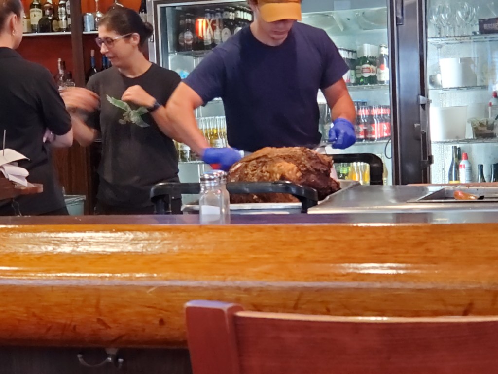 Not long after we arrived and sat down, a large roast beef was brought out from the kitchen and placed on a table behind the bar, where it was carved for sandwiches.