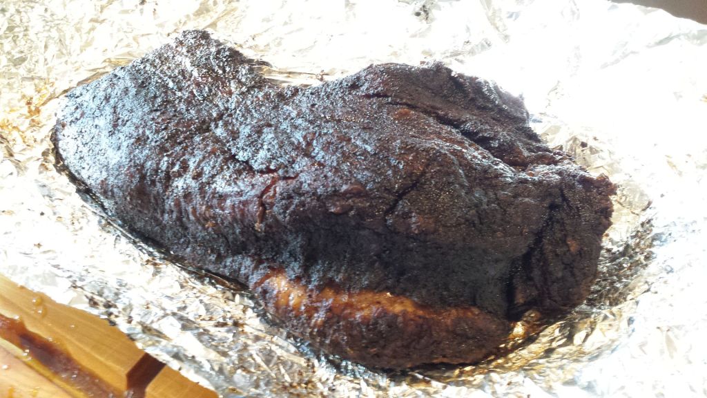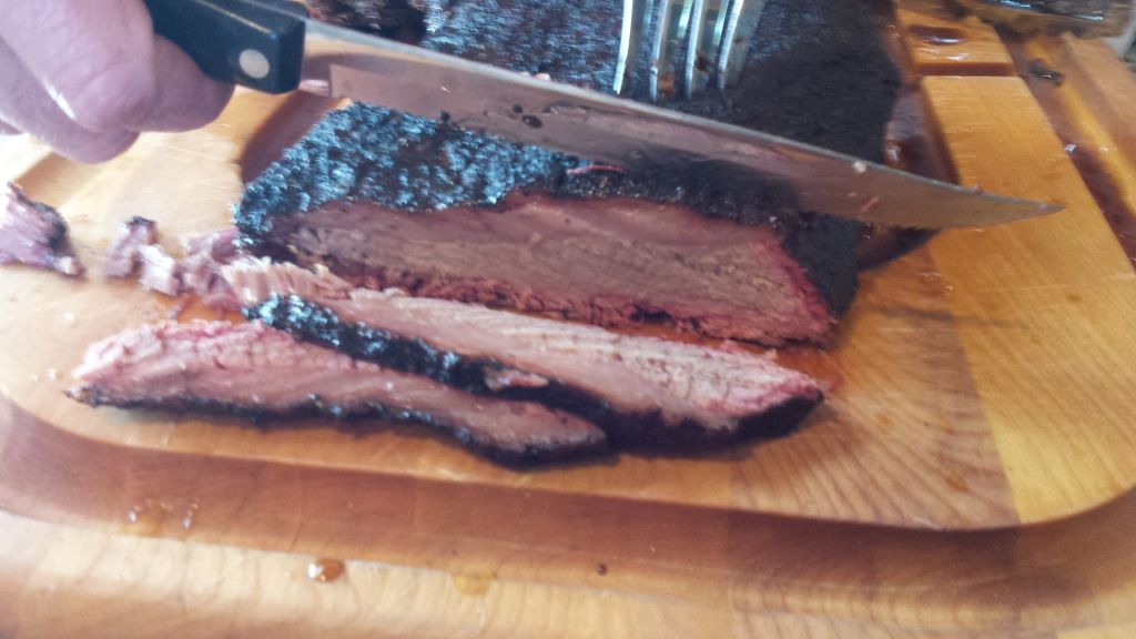 I did say the following day’s dinner. We didn’t get started until the early evening and it takes a while to get the smoker up to temperature, then the meat cooks for many hours over low heat. Low and slow gets the job done when it comes to barbecue.