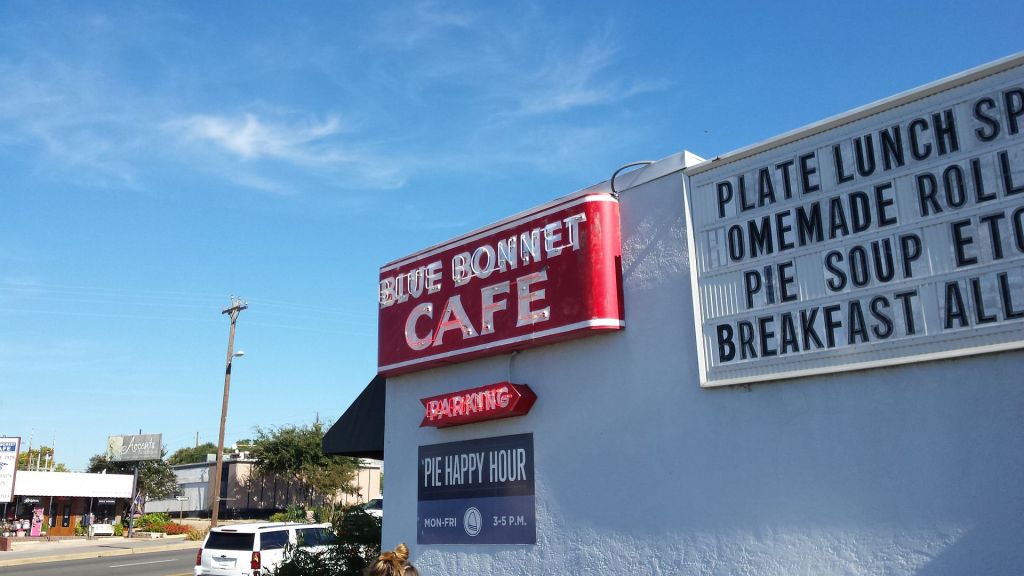 The morning after our dinner, my wife and I were headed to Austin, but not until we stopped for a late breakfast at the Blue Bonnet Cafe in Marble Falls, which was just a short ride from where we had been staying. They are a classic small-town cafe that serves up great breakfasts, meat-and-three plates for lunch and dinner, and world class cream pies.