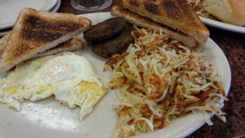 You may not be surprised to read that I was primarily concerned with those pies. If it had been a little later, I’d have also been up for the meat-and-three, but my wife and I both stuck with basic breakfast plates, saving the best for last.