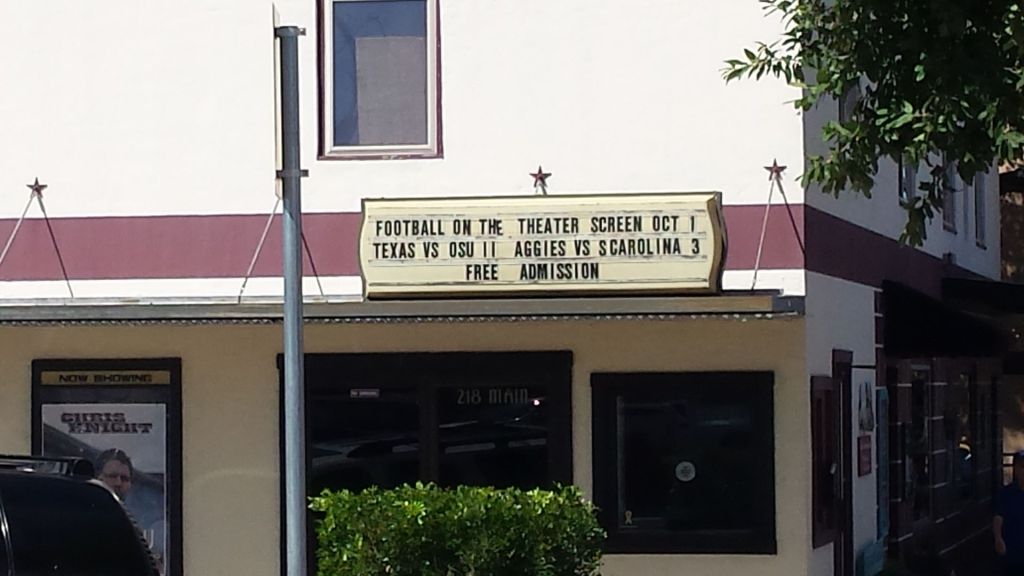 We walked around downtown Marble Falls a bit after eating and checked out some shops. We also saw an indication of how big college football is in that part of the country. The local theater was advertising that they would be showing the upcoming University of Texas game on their big screen.