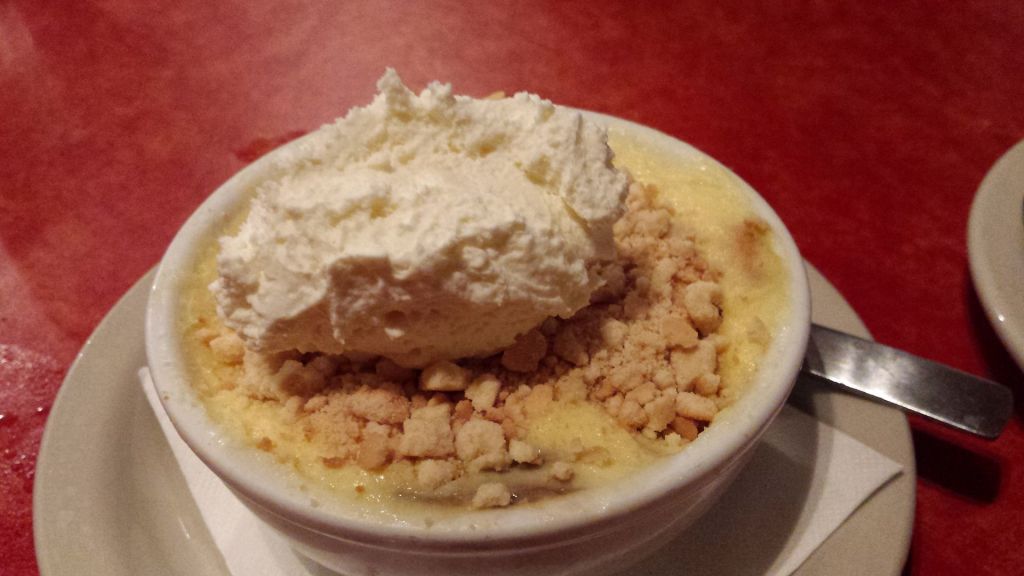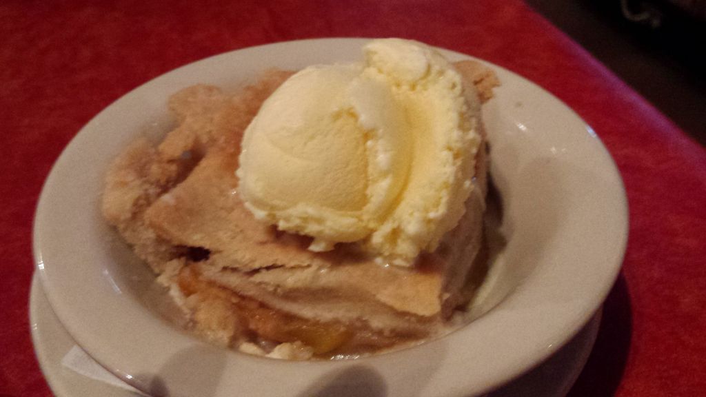 Hoover’s dessert menu featured one of my favorites, banana pudding. But I wasn’t in love with their version. There were too many dry pieces of vanilla wafers. They need to soak in the pudding until slightly softened. to achieve the desired texture. My wife was very happy with her dessert selection; peach cobbler.