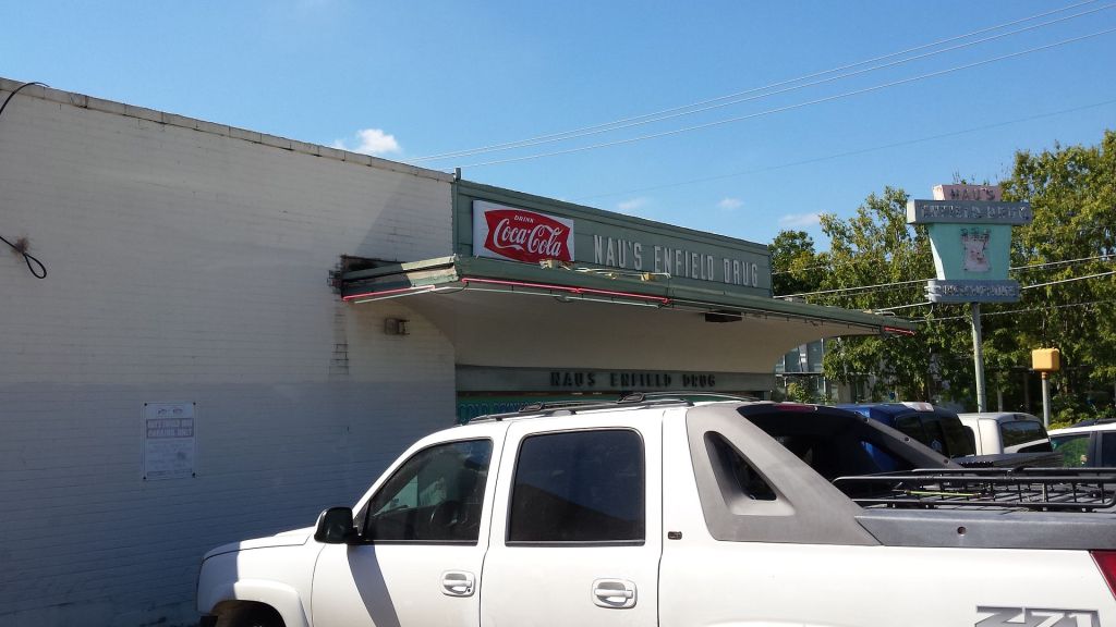 After lunch and before moving on to our sightseeing agenda for the day, we stopped at Nau’s Enfield Drug, a drug store with a classic soda fountain and lunch counter in the back. I’ve mentioned my fascination with pharmacies that still serve food and ice cream in earlier posts. I tend to look for them when researching food for any city we’ll be travelling to. And I haven’t found many that were more classic-looking, both inside and out, than Enfield Drug.