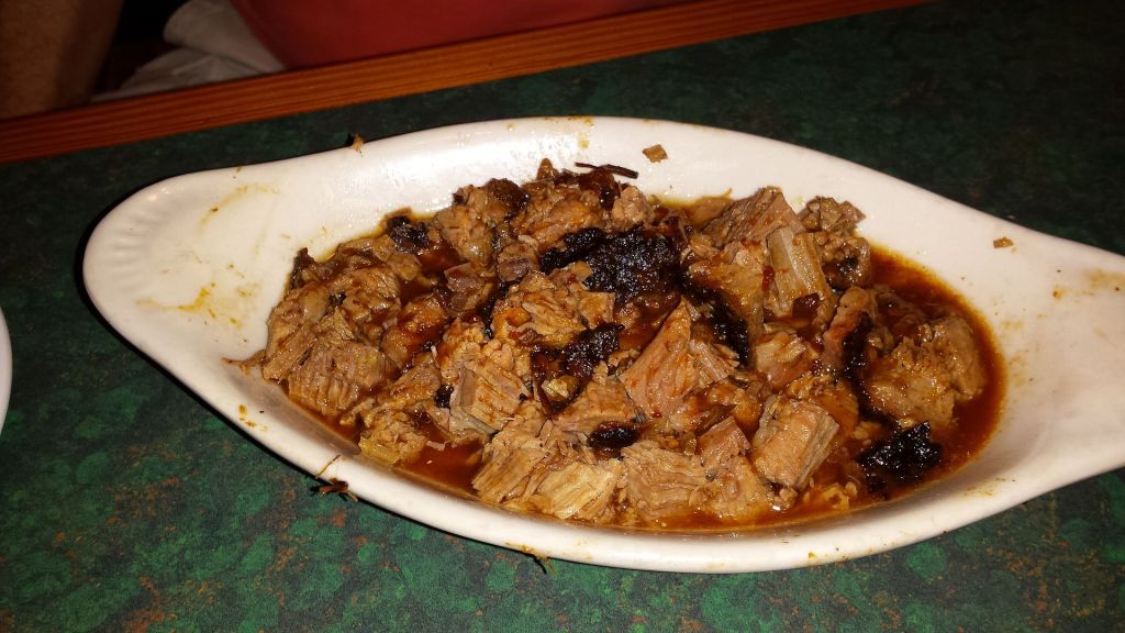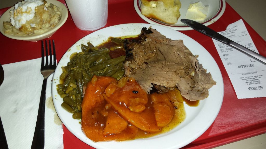 I ordered roast beef with candied yams and extra porky green beans, which were among the best I’ve ever had. My wife went with chicken and dumplings, mashed potatoes and corn pudding. While there was nothing wrong with my yams, when I tasted my wife’s corn pudding, I was so smitten that I wound up eating most of it and letting her have the yams. That corn pudding was in the top tier of sides that I’ve had on our various food-themed trips.