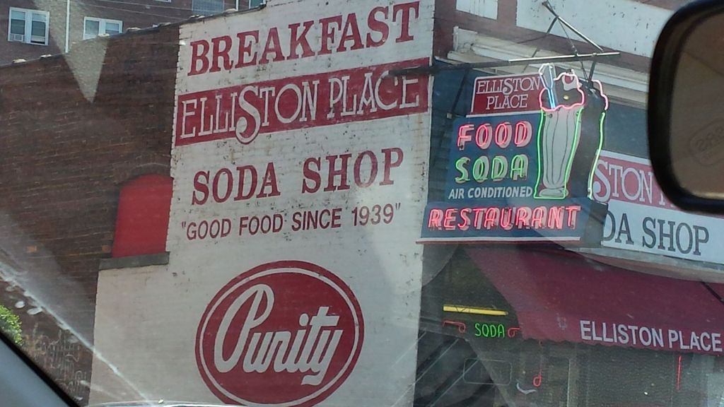 While driving around Nashville, we passed a couple restaurants that I was very familiar with from the roadfood message board, but that we unfortunately didn’t have the time or appetite to stop at. One was the Elliston Place Soda Shop, which is known for meat-and-three in addition to ice cream treats.