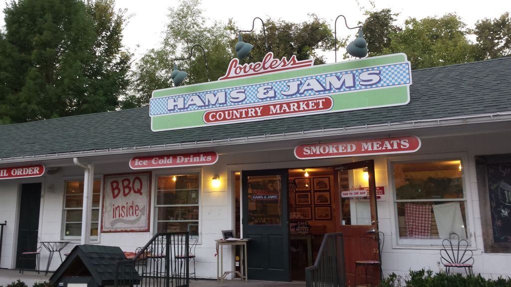 For dinner, which would be our final major meal in Nashville, we went to one of the city’s best known culinary institutions, the Loveless Cafe. Like Arnold’s, the Loveless specializes in meat-and-three, as well as biscuits and country ham. They also have a store on sight where they sell whole hams, among other things.