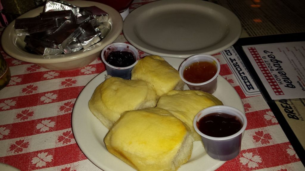 The Loveless Cafe’s biscuits are legendary in roadfood circles. They start you off with a plate of them accompanied by homemade blackberry and peach preserves.