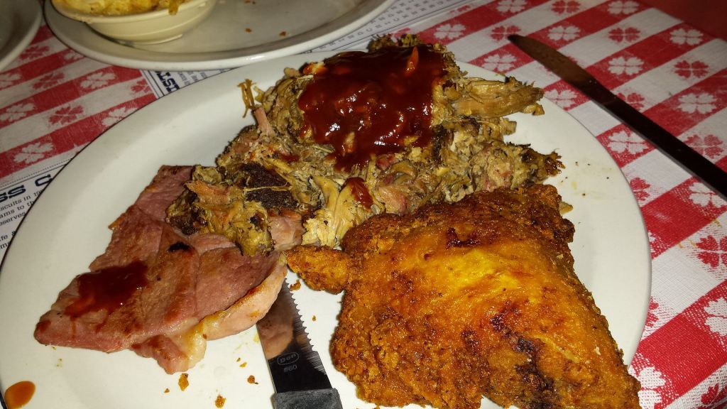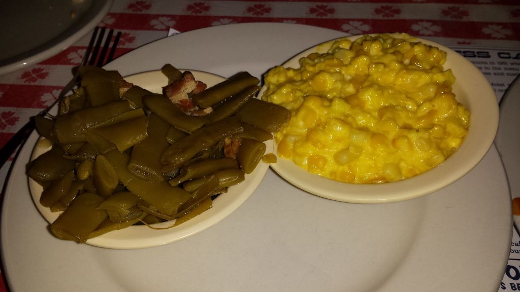 I went with the Southern sampler platter, which featured fried chicken, country ham and pulled pork. Each was outstanding, but the sides were equally appealing. I had more porky green beans, my third helping on this trip, and creamed corn. As much as I enjoyed the green beans, the creamed corn was up there with the corn pudding at Arnold’s. Both are in my all-time pantheon of side dishes.