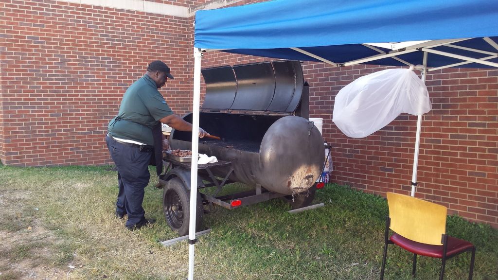 The following morning, we left town and headed north to Kentucky. But before reaching the border, we stopped in Clarksville, Tennessee, to pick up another college mug for my brother-in-law’s collection. This one was from Austin Peay University. I only knew of this school’s existence from their occasional trips to the NCAA Tournament. While there, we came across a school employee barbecuing on a gorgeous offset smoker. Although I didn’t catch it on camera, he turned and gave us a great smile when I commented on how good it smelled.