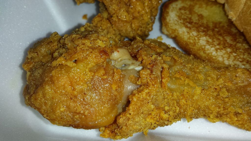 Mr. D’s is a fast-food drive-in. Louis explained that under normal circumstances, I would probably wind up with chicken that had been previously made and was sitting out waiting for someone to order it. But he asked them to make a fresh order for us. That meant a wait of about 20 minutes, but it was more than worth it. Henderson-style fried chicken is spicy – really spicy. But not because of a hot sauce, as is the case with Nashville-style fried chicken. In Henderson, the spice comes from the seasoning in the crust. If I lived in that region, I’d eat this stuff all the time. It’s really phenomenal.