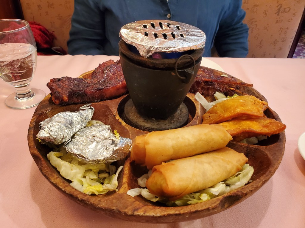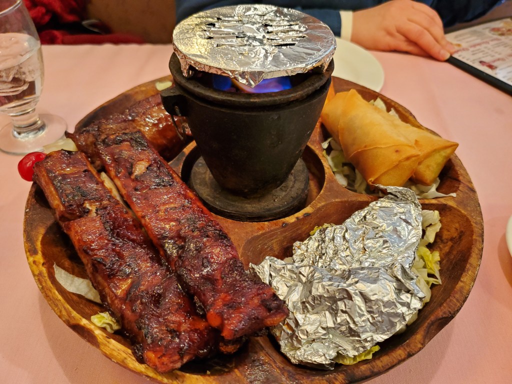 A PuPu Platter is unquestionably the most visually impressive and probably the funnest dish one can order at a retro Chinese restaurant. There is something very satisfying about heating your ribs and beef sticks over the flaming hibachi.