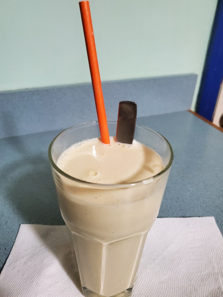 It was average on the thickness scale. I don’t think it would be possible to make an extra-thick shake with this method. The blended peaches and milk create more liquid than you have for something like a vanilla or chocolate shake, where there is only milk and perhaps a little syrup in addition to the ice cream.