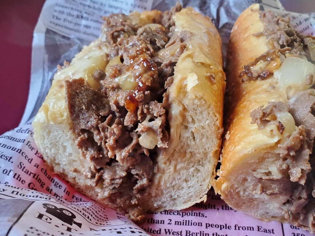 I’m glad I refreshed my memory. The first bite was a real eye-opener; not unlike the impression I had when I bit into the cheesesteak at Cockadoodle Dan’s. The levels of the meat’s flavor and juiciness were through the roof. There were a lot of well-fried onions and an ample amount of Cooper Sharp. I could see someone who really loves a lot of cheese on his or her steak wanting more, but it was enough for me, and it was blended nicely with the meat.