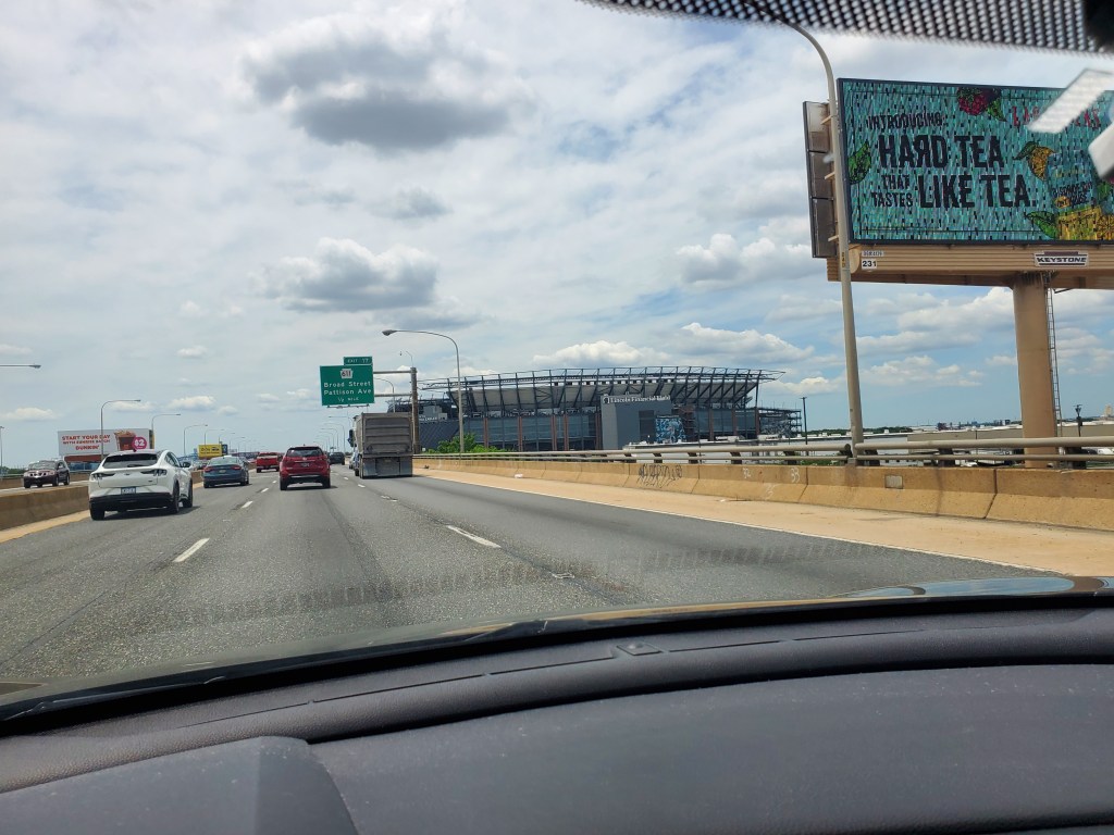 My route home took me past South Philadelphia’s sports complex. I’m approaching Lincoln Financial Field, the home of the Eagles, whose Super Bowl win now seems only slightly less remote than Ben Franklin walking the streets of Old City. Time for another one.