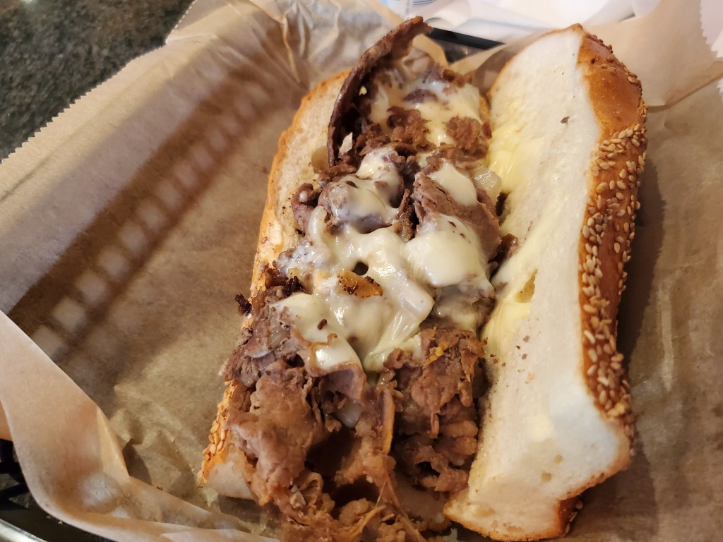 Having said that, I’m not trying to steer people away from the place. It wasn’t a bad sandwich by any means. I was just expecting to be blown away and wasn’t. But judging any sort of food involves a lot of subjectivity. I suspect one of the factors that led to the steak being disappointing to me would be considered a plus by many people. I’m referring to the amount of cheese that was on there.