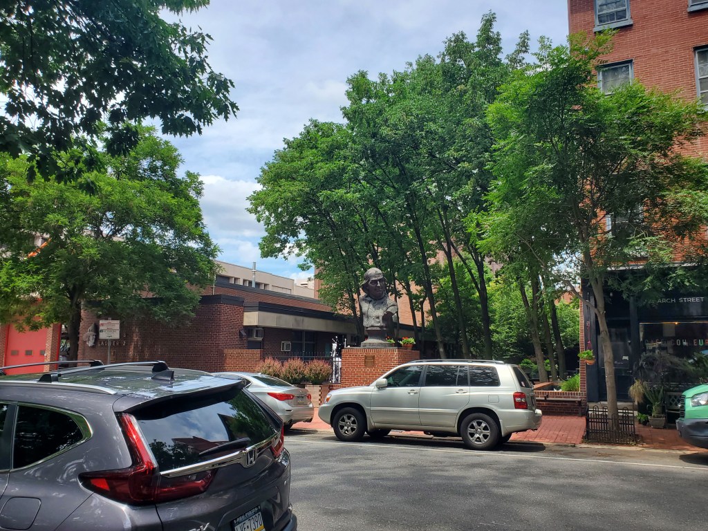 It’s not possible to walk very far in Old City without being reminded of its most famous former resident; Benjamin Franklin. This bust is next to a fire station. Of course, Franklin founded the first volunteer fire company in the American colonies.