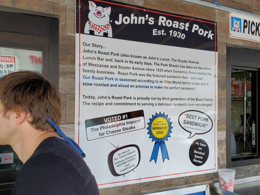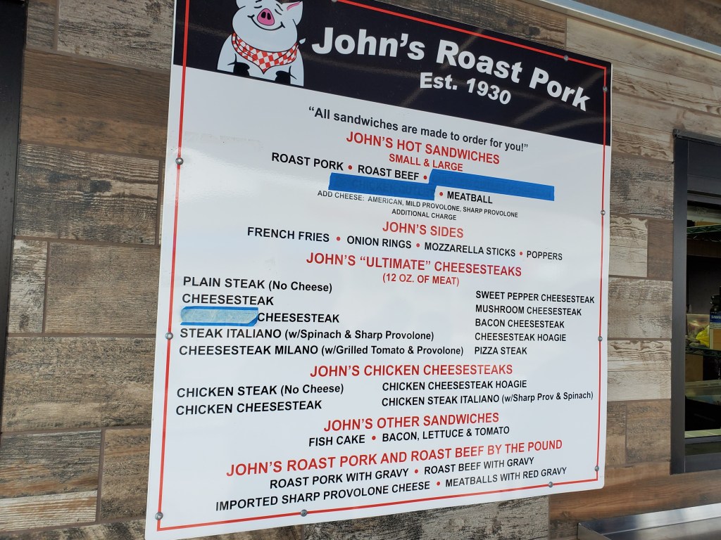 John’s has altered its ordering system at least a couple times since Covid hit, which has ultimately resulted in a simpler set-up than they had before the pandemic. Customers used to order grill items, including cheesesteaks, at one counter and hot sandwiches – roast pork and beef – at another. Now, you order and pay for everything at the same window, then wait on the sidewalk for your number to be called out at a separate window that is just for receiving your food.