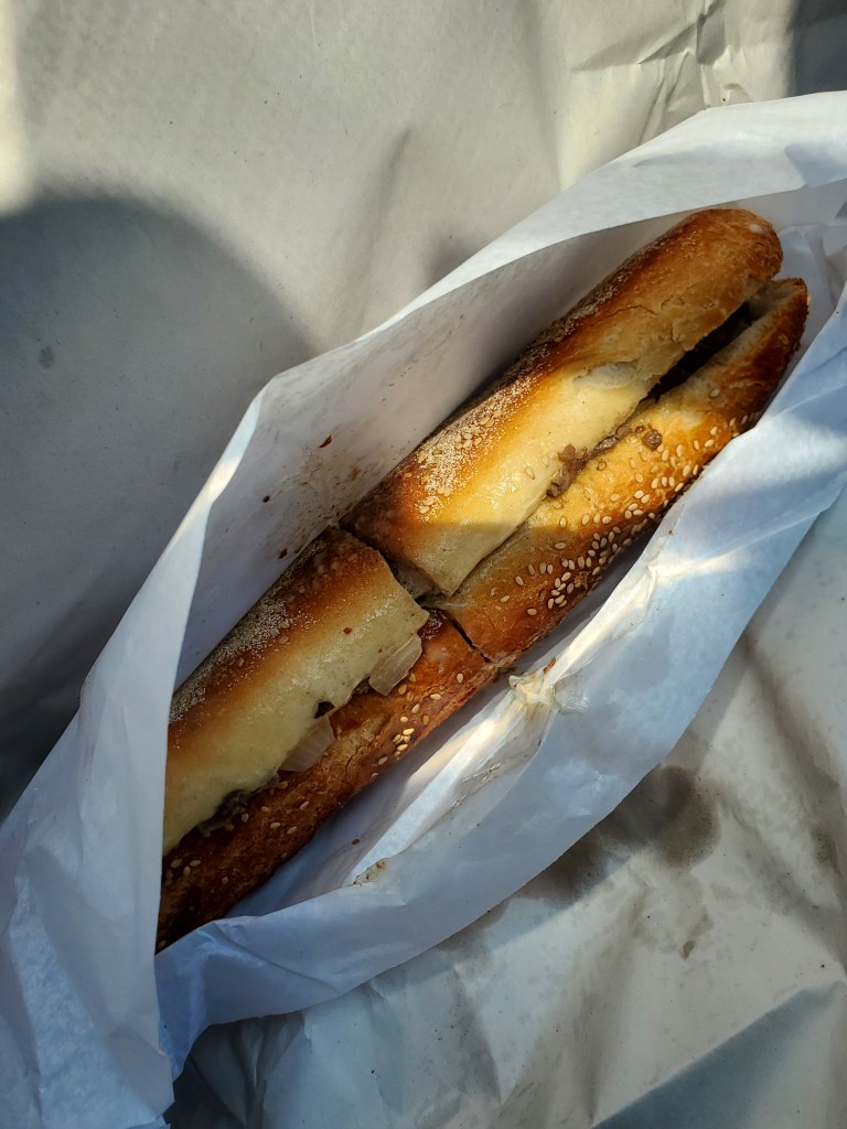 To take a step back, before pulling out of the spot I had near Angelo’s, I partially unwrapped the steak to avoid any possibility of the roll steaming.