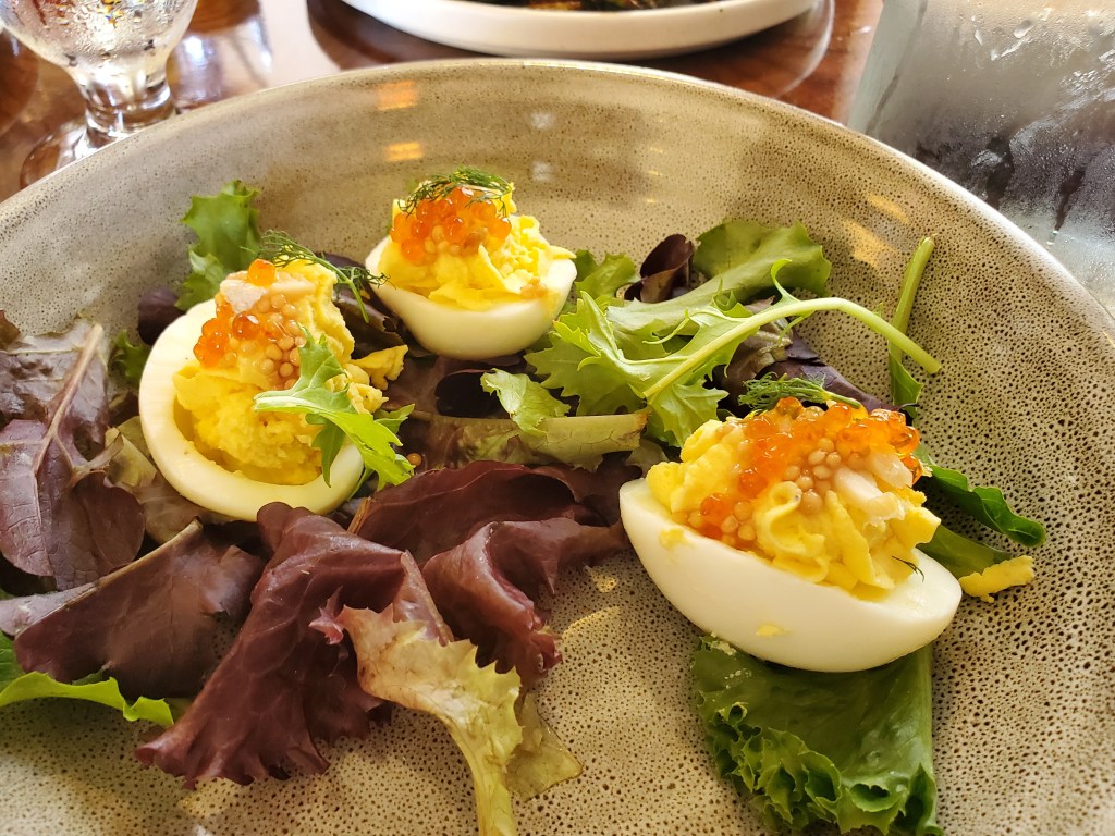 I was also happy with the deviled eggs. About the only thing that can make me not like a deviled egg is the presence of too much mayo. That wasn’t the case here, and the smoked trout, along with the pickled mustard seed, trout roe, and dill, all went together well to create a nice overall flavor.