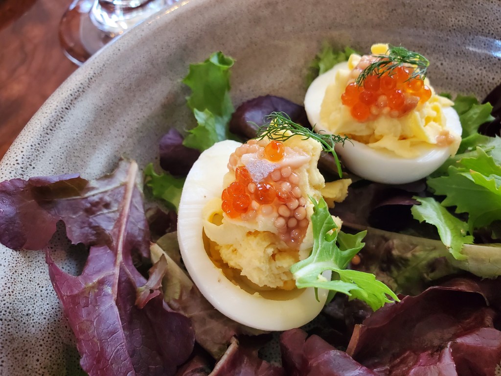 Then there was the all-appetizer option, which would have been deviled eggs with smoked trout, followed by the crab bisque.