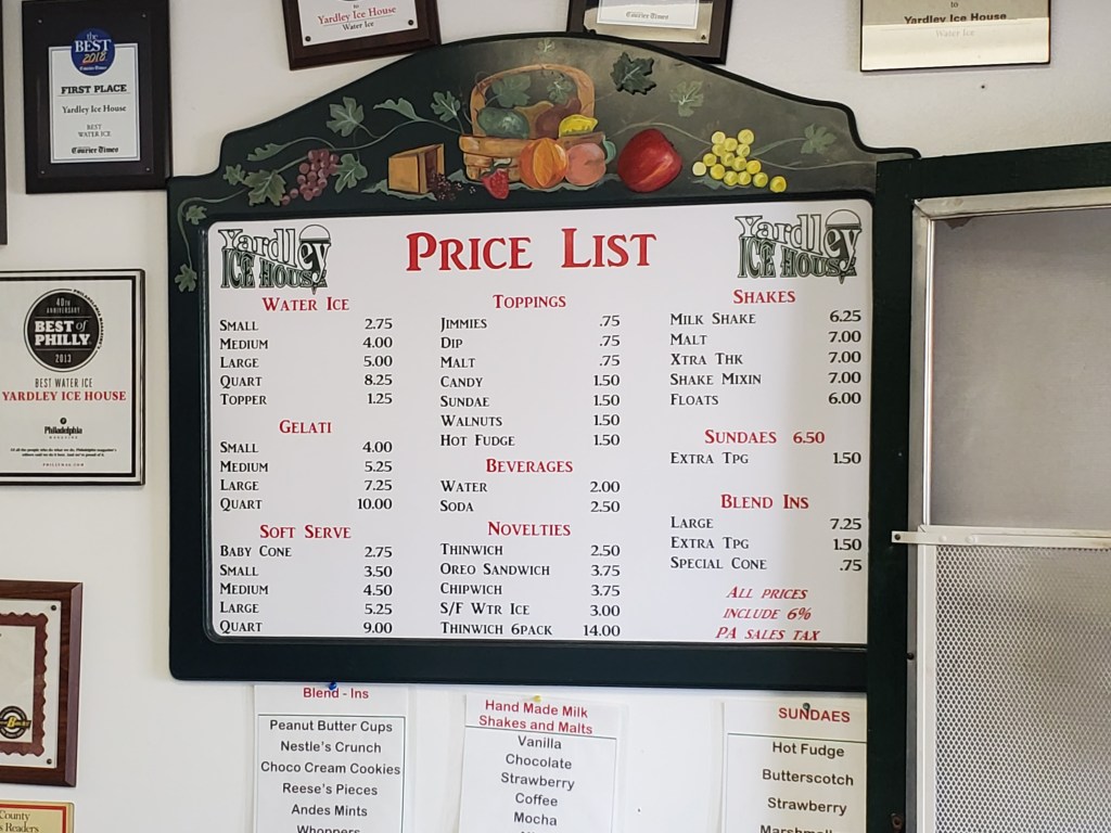 Tom and Bernadette had to head home after lunch, but my wife and I had a second destination in Yardley lined up for dessert. A longtime friend of mine lives in the town and has mentioned the Ice House on Facebook over the years. It’s a few blocks from the Inn, and the walk was needed after lunch – especially given that it would end with more food consumption.