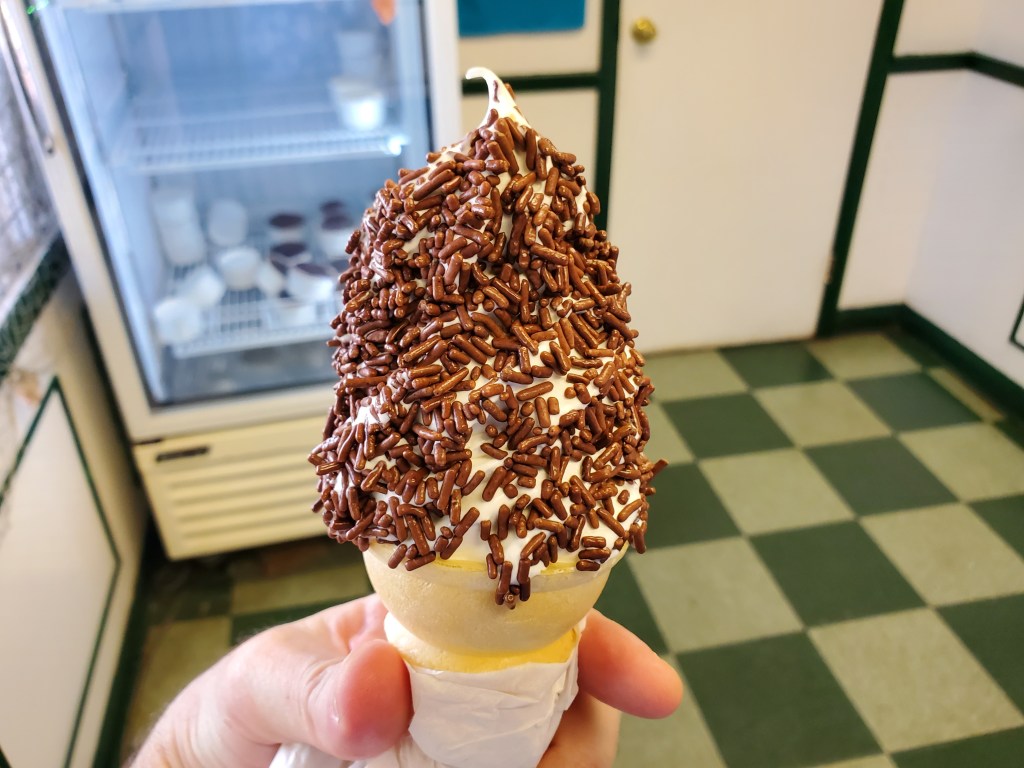 My wife tried out the key lime pie water ice, while I went with one of my standbys; a vanilla cone with chocolate jimmies – what we call sprinkles in this region.