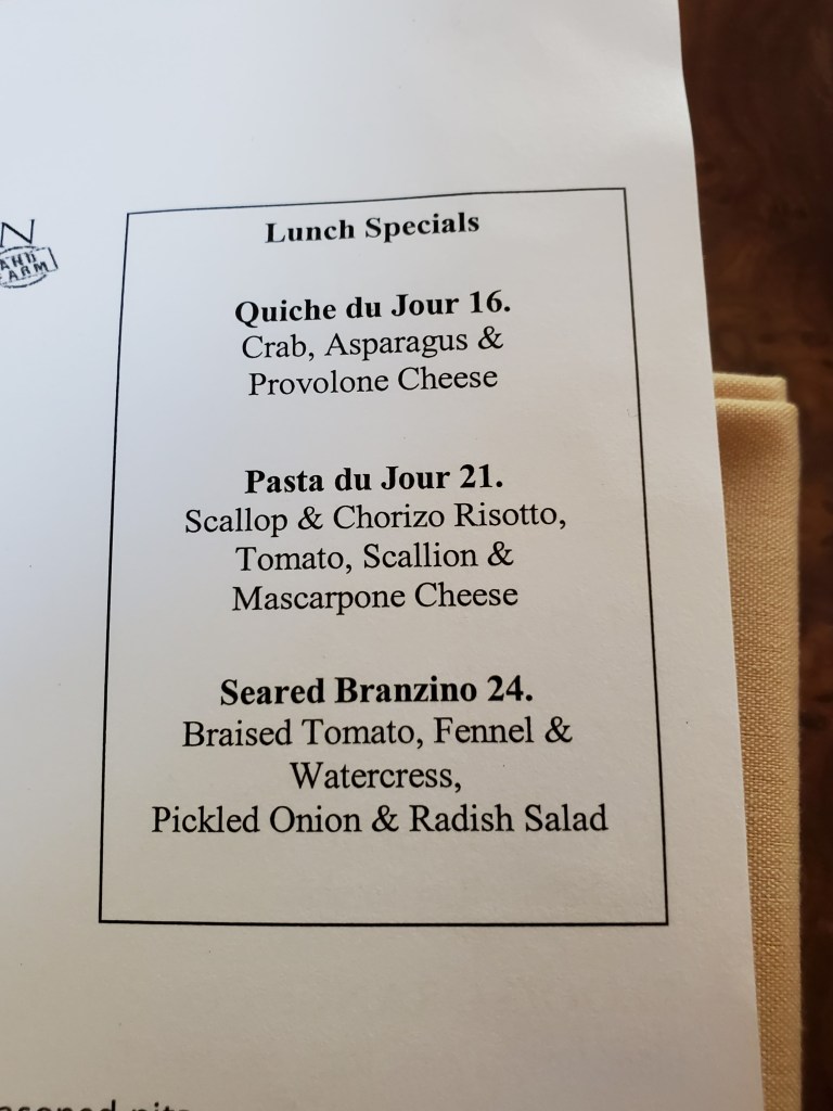 I also gave at least quick consideration to the crab cake and fish and chips. But I was concerned the former wouldn’t be enough to eat, and decided a deep-fried lunch wouldn’t be in my best interest as far as the latter goes.