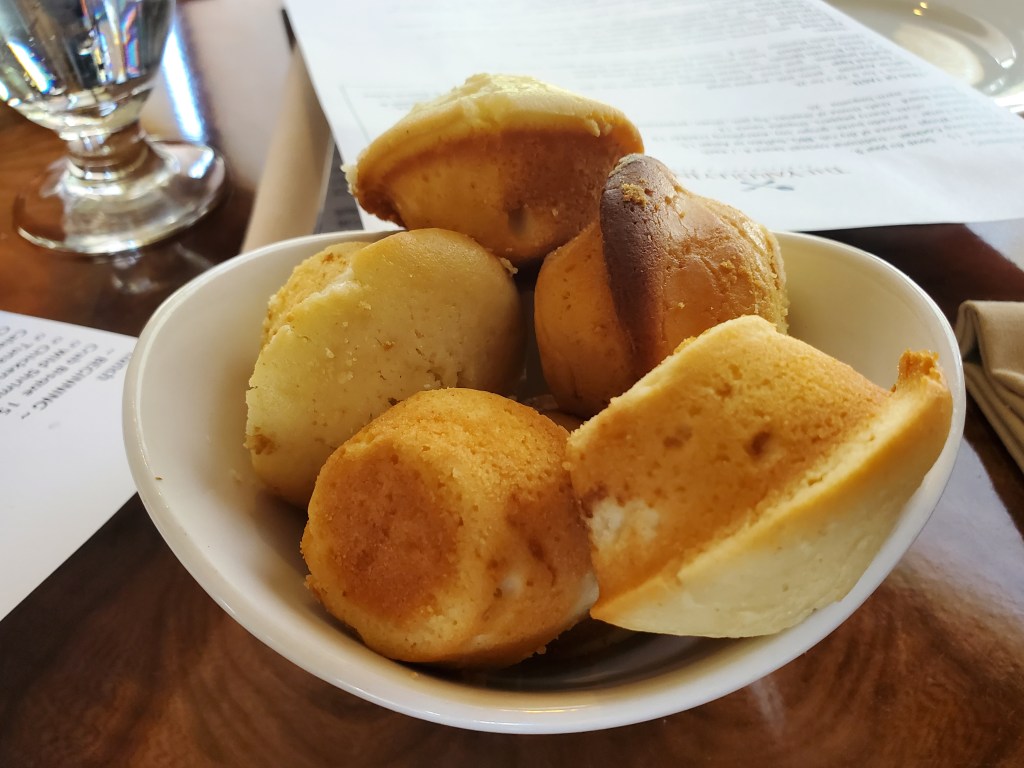 While we waited for our first courses, this basket of extremely good citrus muffins was dropped off to hold us over. I had hardly had any breakfast and was happy to put a couple of these away. The outer rim of the tops had a nice bit of crispiness.