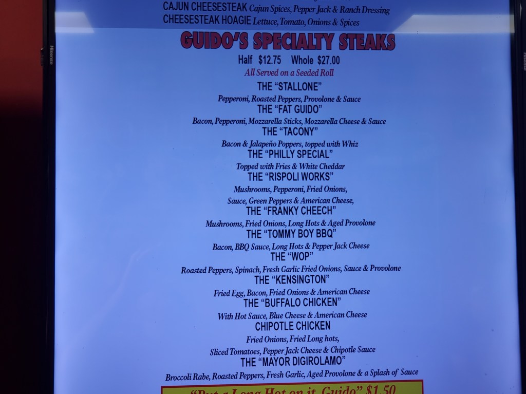 They are not among the most frequently mentioned steak shops where I generally look for tips on which ones to try – mainly the Cheesesteak Gurus group on Facebook. But they do come up periodically and the reviews of their steaks are usually stellar. I’ve been intrigued about them for a while, but needed to feel the pressure of coming up against my self-imposed deadline for trying new steaks – in advance of posting my list of the area’s best – before finally making the drive to check out Guido’s in person.