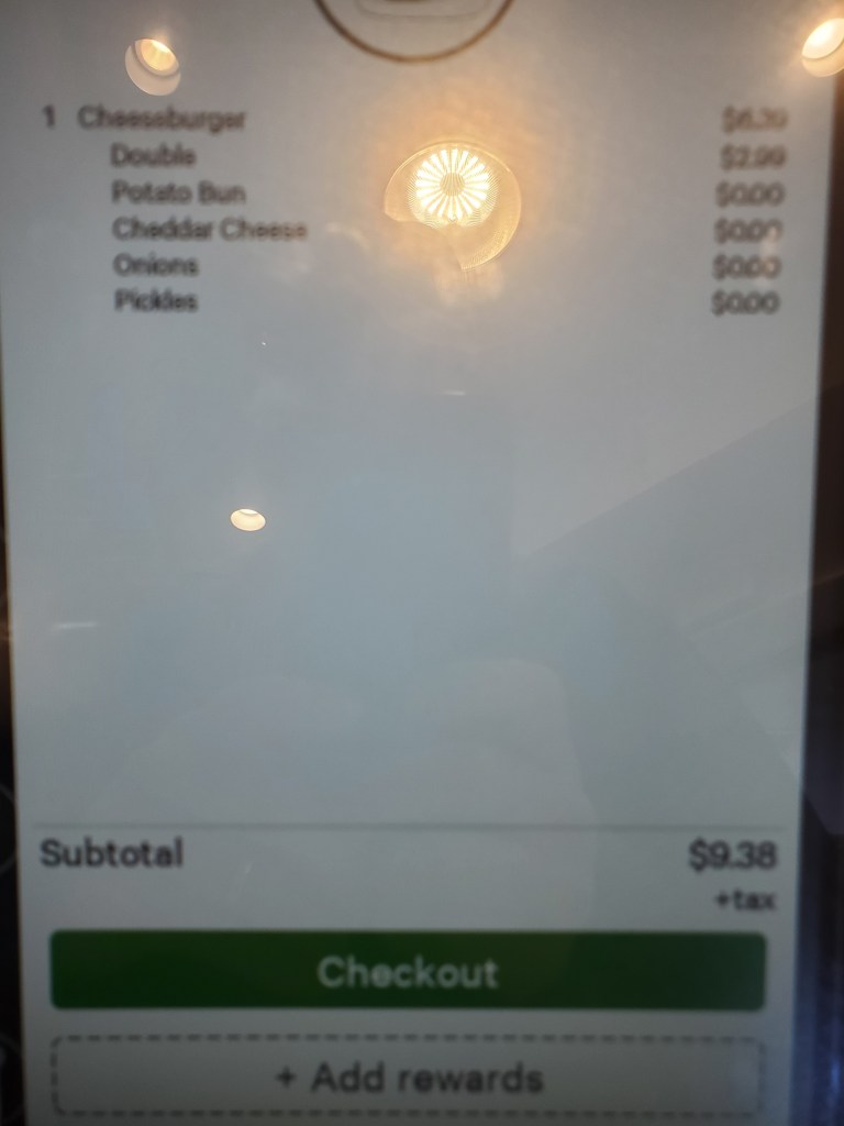 I went for a double-cheeseburger with Cheddar cheese, raw onion and pickles and added ketchup at my table.