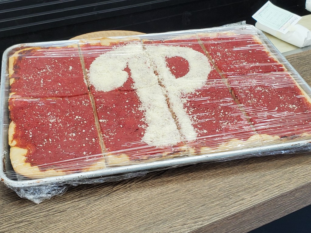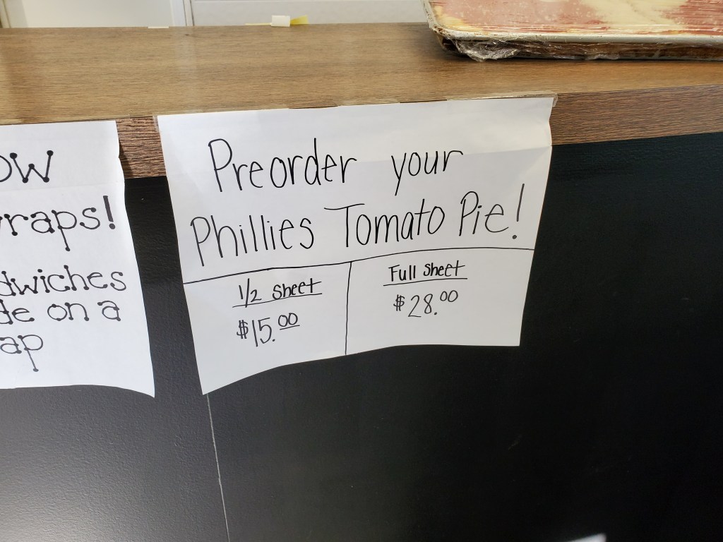 While I was waiting to place my order, I spotted a special tomato pie they have on sale in honor of the Phillies’ return to the World Series.