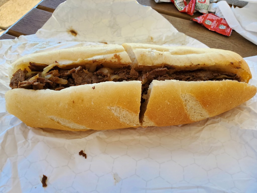 The only visual difference is that they’ve changed the indentation pattern on the tops of the rolls. But it had the same great taste and texture as always. The crust is wonderfully chewy, and they are a bit heftier than most steak rolls. That’s why I ordered a small cheesesteak. It may only be 8-9 inches long, but it left me as full as larger steaks from other places often do the last time I had one.