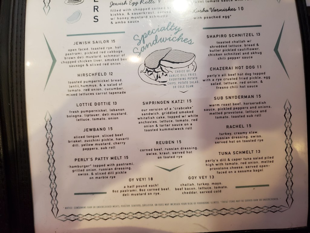 As was the case with Full Kee, Perly’s – a Jewish-style deli-restaurant – popped up on some, if not all of the best-of restaurant lists for Richmond that I checked out before our trip. In fact, it appeared to be fairly popular among Richmond’s urban hipster set.