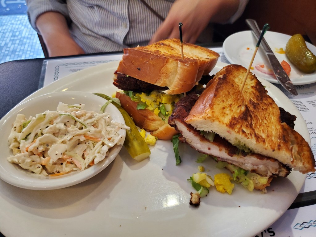 My wife ordered the Shapiro chicken schnitzel sandwich along with an assortment of pickled items, including dill pickles, from a list of options they had posted on a board.